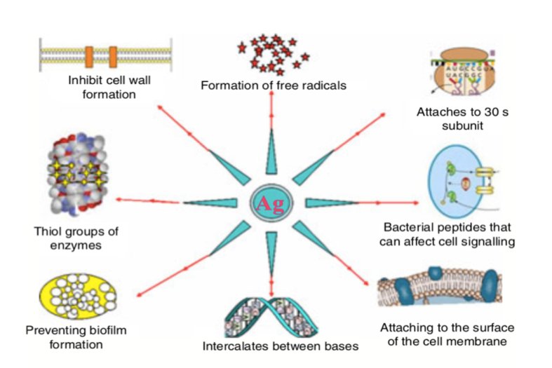 وجد أيضا ان جزيئات الفضة النانوية تمنع تضاعف الحمض النووي DNA للخلية البكتيرية وبالتالي تمنع تضاعف وانقسام الخلية ثم موتها